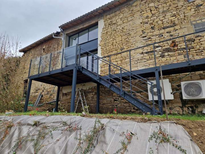 Renovation complète des menuiseries et fabrication sur-mesure du terrasse suspendue